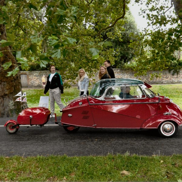 Her Name is Frances Jane. She is a Messerschmitt KR200 Dometop. My Name is Terry Smith, and we have been together for 25 years now, with permission from my wife, Frances. We have had our ups and downs. But she is behaving herself now, that is, Frances Jane, not Frances, my wife. She was a wreck when I bought her. However, after a complete strip-down, sandblasting, and respray, she is what you see today. As for myself, I am 75 years old and have been married to my dear Frances for 53 years. This is my first Gentlemen's drive, so I do not know whether I will make the distance or not. My car has a top speed of 50 mph. My problem is that any slight gradient reduces my speed drastically. We shall see.